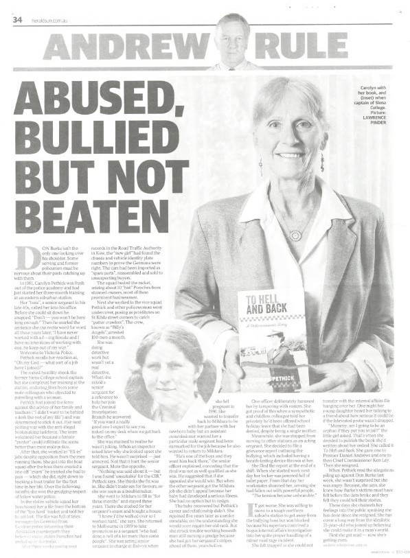 For over 30 years Carolyn Pethick served with the Victorian Police with pride. It was a job she loved and she was a key part of every community she served. What most people didn't know was that during these 30 years, she was continually bullied, discriminated against for being female and sexually harassed. The leaders who were supposed to "have her back" clearly didn't.